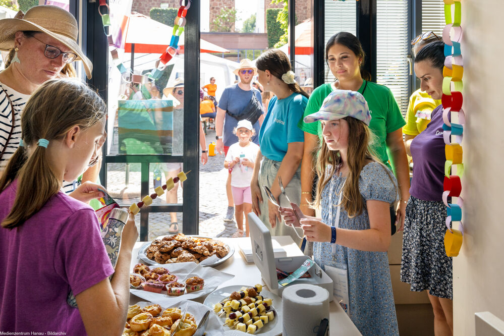 Gegen eine freiwillige Spende erhalten Sie beim Abschlussfest Geld in der Kinderstadt-Währung „Hanauer Schwäne“, mit denen Sie in der Stadt einkaufen können.